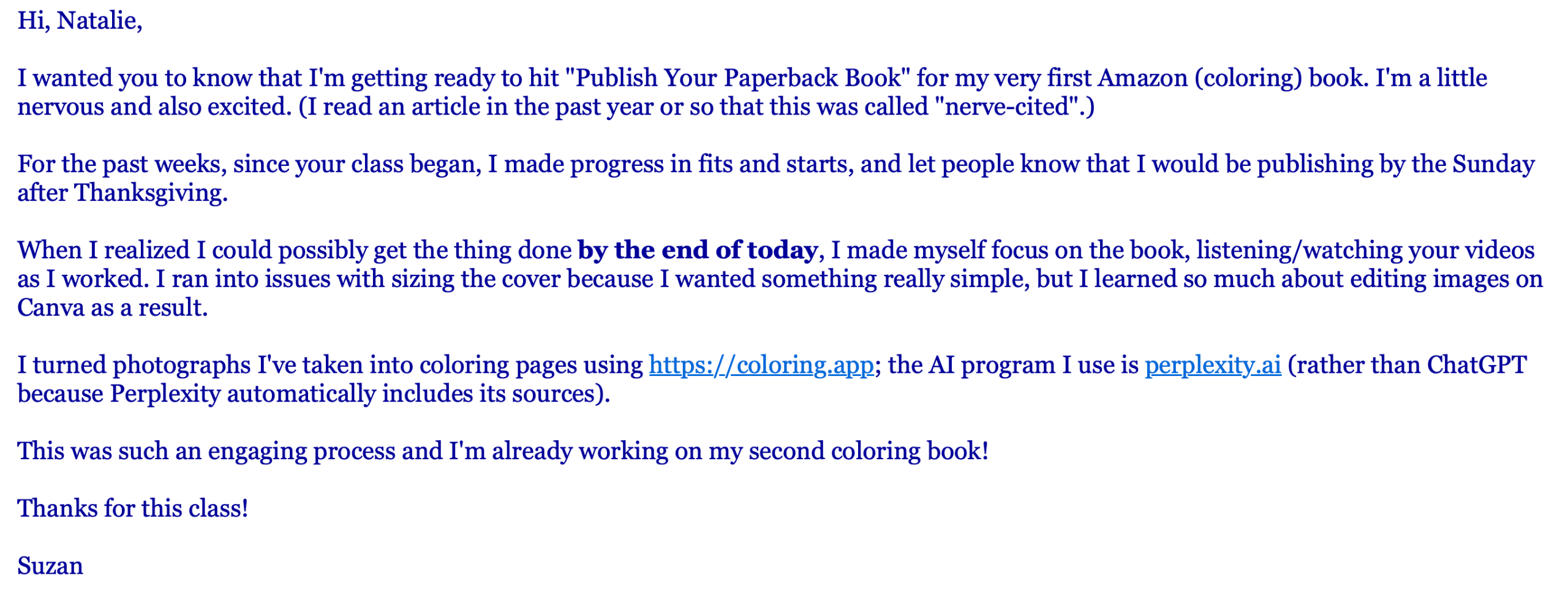 That means you can come back to the lessons anytime and use the system again whenever you want to create more books.